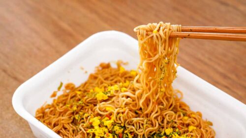 筆者はシーフードトリオを3種類とも実食済みですが、いちばん「シーフードヌードル」っぽくなかったのがこの「日清焼そばU.F.O. カップヌードルシーフード焼そば」ですね。ただ「シーフードヌードル」風の味にするのではなく、ちゃんと焼きそばとして完成された味わいを楽しめました。