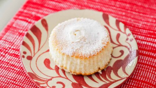 カラメルソースは全面ではなく中心あたりに入っていますよ。