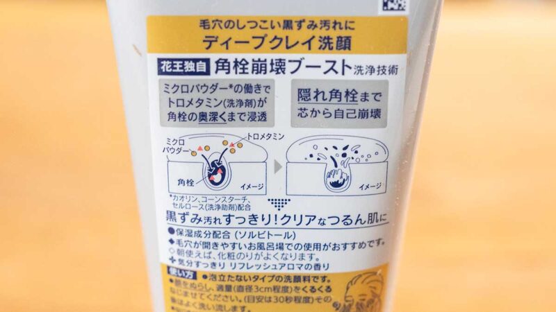 「ディープクレイ洗顔」は、日本初となる毛穴奥の角栓洗浄性を高める成分のトロメタミン:洗浄剤とミクロパウダー(カオリン、コーンスターチ、セルロース:洗浄助剤)を配合した洗顔料です。この“隠れ角栓まで自己崩壊”させる、角栓崩壊ブースト洗浄技術を採用することで、普段どおりの洗顔で毛穴の黒ずみ汚れまでケアできるといわれています。