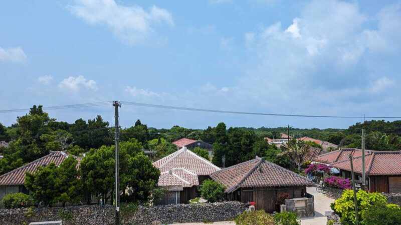 石垣港離島ターミナルから船で15分ほどで行ける竹富島は、離島のなかでも知名度が高くて特に人気があります。沖縄の原風景が残る島内は、重要伝統的建造物群保存地区に指定されており、赤瓦の民家や白砂(サンゴの破片)の道、ブーゲンビリアの垣根など、「これぞ沖縄!」と言いたくなるような町並みが特徴です。
