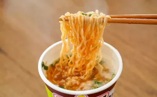 調理方法は、ふたを半分まではがし、熱湯をカップの中に注いで3分待つだけでOKです。